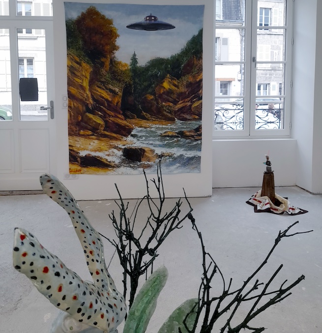 Pour cette exposition, à Vallière, j'ai fait ce que je sais faire de mieux c'est à dire mélanger plusieurs médiums (photo, sculpture, dessin, installation) pour donner à voir et j'espère à comprendre un univers mental, une mythologie personnelle toujours ancrée dans la sensibilité enfantine, mais structurée par une vie de "visiteur" dans le monde des adultes. J'ai cette fois-ci ntégré à ma pratique iquelques éléments issus de la ferme familiale dont j'ai hérité et que je préfère regarder sous un angle sculptural et poétique plutôt que je manière foncière et matérialiste. This time I have integrated into my practice some from the family farm that I inherited and which I prefer to look at from a sculptural and poetic angle rather than a fundamental and materialist way. I tried to deepen the art-brut and primitive modern aspect of my artistic approach echoing my childhood memories synonymous with solitude and melancholy but with an obsession for the quest for joy, happiness, color and eclecticism. The soundtrack comes from the concert I gave during the finishing. |