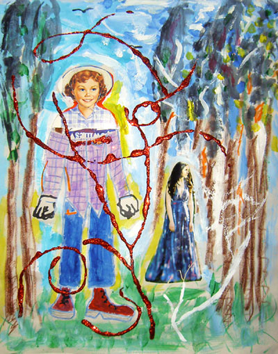 | 53 - Fairy Tale 1 Acrylique, crayon, bombe en spray, pastels gras, paillettes et encre de Chine - 42/57cm - 2009 |