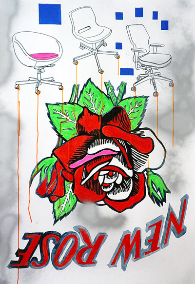 Flower of Romance. Acrylique, crayon, pastel gras, peinture en spray sur papier. 80/120 cm - 2009 |